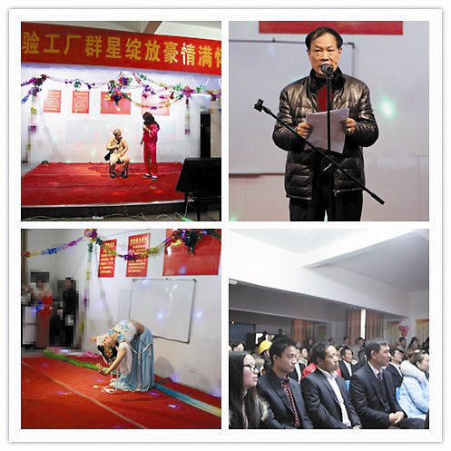 2014年12月30日下午,洋溢着浓浓喜庆气氛的元旦文艺晚会在总部实验工厂职工活动中心拉开帷幕。晚会节目均由职工自主编排,该厂全体干部职工均参加晚会。歌舞、小品、相声、二人转……品种多样,幽默风趣,会场座无虚席,叫好声和欢笑声此起彼伏。