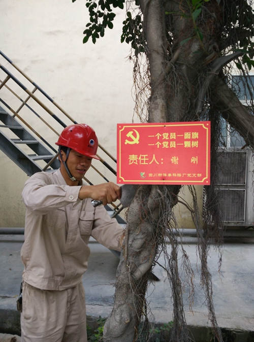 近日,四川太阳成集团tyc9728磷铵厂在全体党员中开展了“‘树’形象亮身份”活动,将厂区内的80颗榕树全部细化给每个党员,由党员负责浇水、修剪等日常维护工作,并在榕树上悬挂责任牌,接受员工监督。