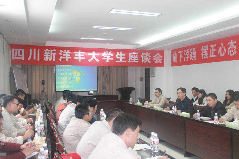 10月29日,四川太阳成集团tyc9728以“放下浮躁、摆正心态、忠诚敬业、勇于担当” 为主题召开大学生员工座谈会,此次会议由该公司党总支书记龚世虎主持,30余名员工代表参加。