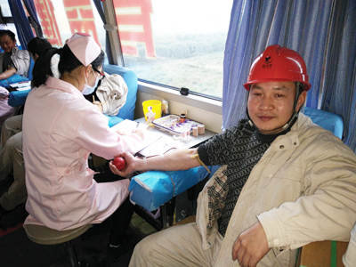 1月22日早上8点,由总部合成氨厂党支部和荆门市红十字中心血站联合组织的“无偿献血”活动在该厂举行。