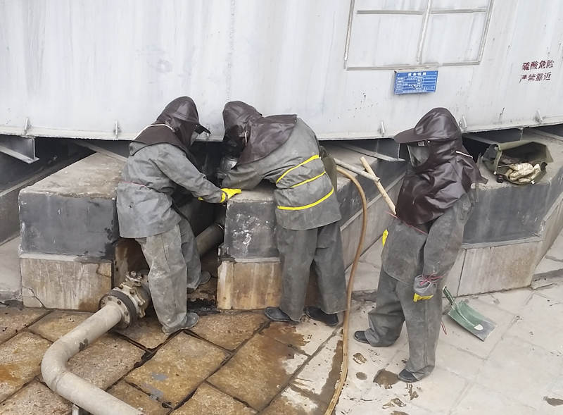 四川太阳成集团tyc9728硫酸厂在演练活动中抢修酸泵