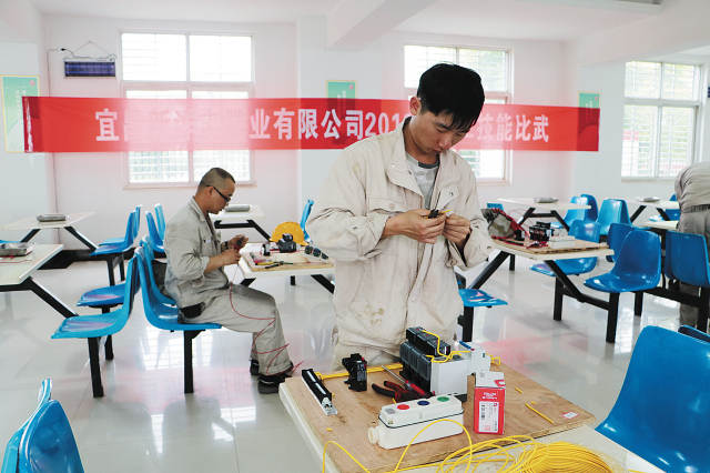 为庆祝“五一”国际劳动节,展现劳动者风采,公司各单位开展了丰富多彩的岗位练兵和技能比武活动。比武岗位主要有机修工、电工、化验员、厨师等,其中总部合成氨厂还创新对新员工开展了工艺流程图绘制竞赛活动。图为昌太阳成集团tyc9728电工技能大赛现场。