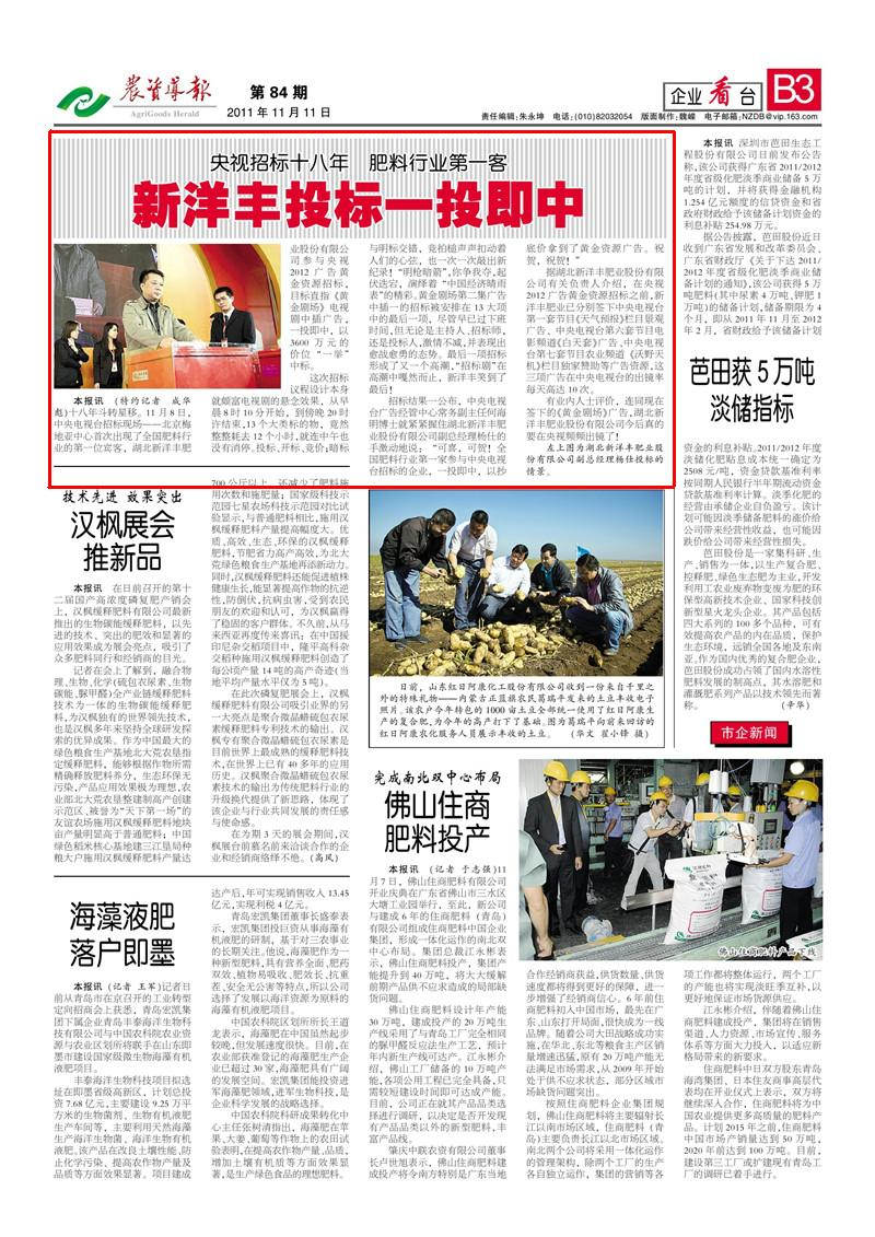 招标结果一公布,中央电视台广告经管中心常务副主任何海明博士就紧紧握住湖北太阳成集团tyc9728肥业股份有限公司副总经理杨仕的手激动地说:“可喜,可贺!全国肥料行业第一家参与中央电视台招标的企业,一投即中,以抄底价拿到了黄金资源广告。祝贺,祝贺!”