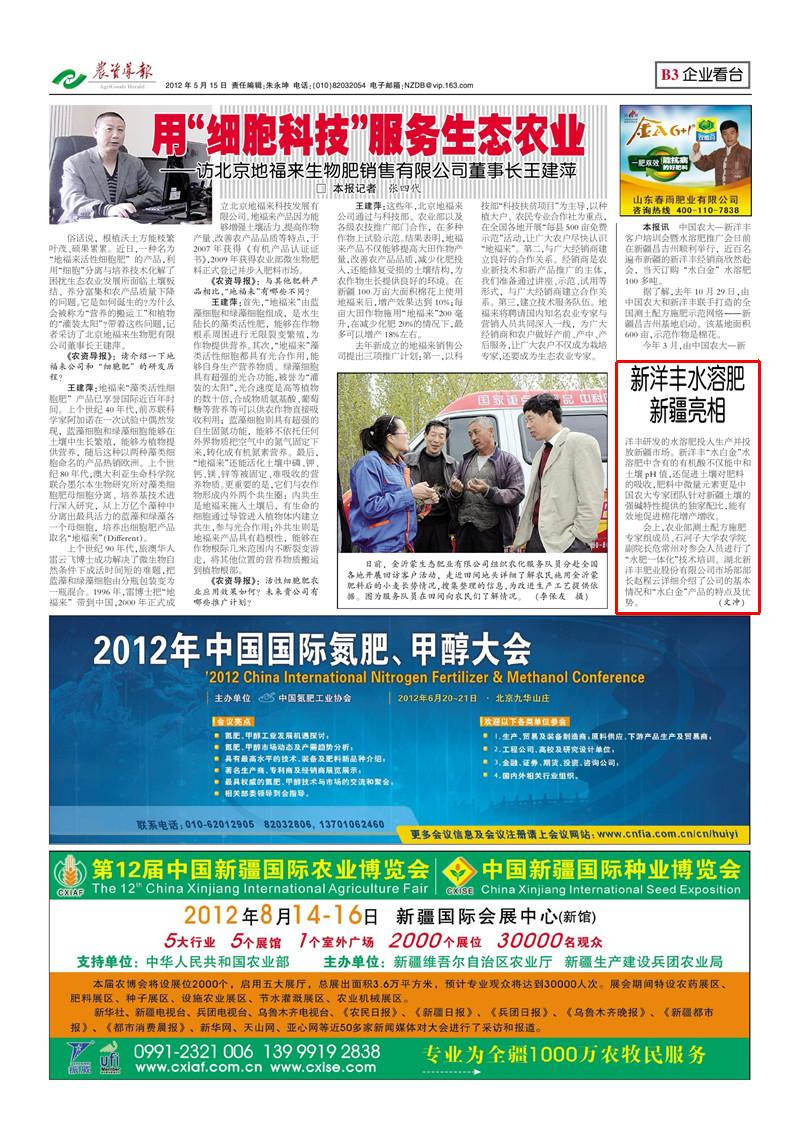据了解,去年10月29日,由中国农大和太阳成集团tyc9728联手打造的全国测土配方施肥示范网络--新疆昌吉州基地启动。该基地面积600亩,示范作物是棉花。