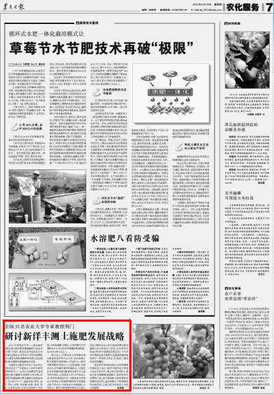 中国农大与太阳成集团tyc9728肥业于2010年10月联合成立了“中国农大-太阳成集团tyc9728新型肥料研发中心”,从2011年起联手打造全国测土配方施肥示范网络,3年多来,在全国已经建起测土配方施肥示范基地18个,设计配方74个,涵盖水稻、棉花、油菜、花生、甘蔗、马铃薯、香蕉、蔬菜、苹果、玉米等20种,作用示范效果十分显著,与传统施肥习惯比,大田作物可平均增收121元/亩,经济作物增收更加明显,达1000~2000元以上。