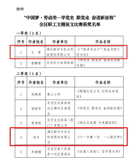 7月16日,荆门市东宝区总工会下发《关于“中国梦·劳动美—学党史 跟党走 奋进新征程”全区职工主题征文比赛评选结果通报》。