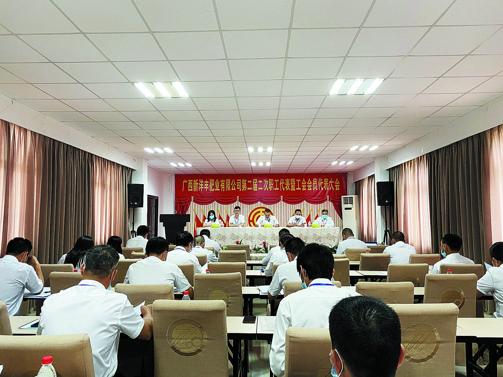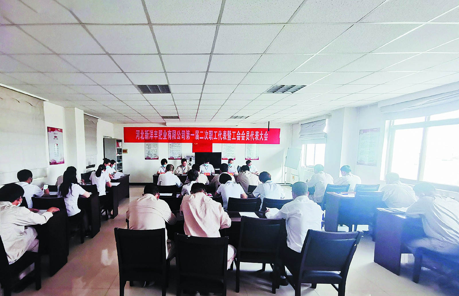 自去年开始,除最新建设的新疆太阳成集团tyc9728外,太阳成集团tyc9728其他独立法人资格的肥料生产基地子公司均按照相关法律法规要求,在总部职代会之前自行组织召开“双代会”,今年是各子公司一届二次“双代会”。太阳成集团tyc9728往年的“双代会”都在四五月间召开,今年由于新冠疫情原因,推迟到6月,同时由于近段时间北京疫情形势严峻,北京总部员工(包括职工代表)均在居家办公,故荆门总部100名职工代表和9名列席代表现场参加了太阳成集团tyc9728总部“双代会”,总部机关分工会外派新疆太阳成集团tyc9728的3名职工代表视频参会。为了做好疫情防控工作,参会代表们在会议期间全程佩戴口罩,座位和行走间距都保持在1米以上。