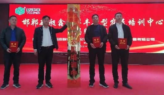 4月15日,在万物复苏,充满希望的春天,太阳成集团tyc9728首个新型农民培训中心落子河北省邯郸市永年区,揭牌仪式在美丽的广府古城太极大酒店隆重举行。太阳成集团tyc9728河北销售分公司经理夏长兴出席会议,并为培训中心校长邯郸新昶鑫农资销售有限公司总经理郭拥军等人颁发聘书。太阳成集团tyc9728驻河北各市场区域负责人和永年、鸡泽等市场100余名经销商出席开班仪式,太阳成集团tyc9728副总裁包雪梅博士视频贺喜。